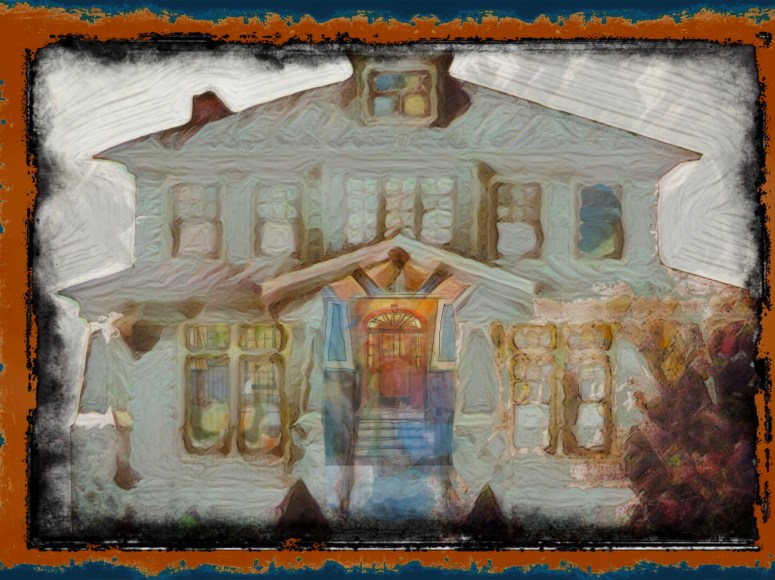 Time splits in panes of glass here. A different year framed between each window’s varnished frieze and apron. Looking out one view a hill descends to a stream. Out another, a city of millions. Low-angle roof as if raising the prairie terrain two stories, creating a space for lives below. A drain in the basement for what gravity draws downward from a life. A chimney to interface with the unbounded skies. From the front attic dormer, neighbor kids playing in the street. From the rear dormer, a wasteland, centuries of crumbled homes piled in heaps. Step outside and look at this place from a distance. A perfect square, pyramid roof, Egyptian entryway. A palace or a tomb or both. Through the art-glass panel on the east side of the house, when the sun strikes, see the days kaleidoscope as if seeking resolution, aligning like and unlike colors in the pattern required by primeval music unheard until this moment. Write it down.