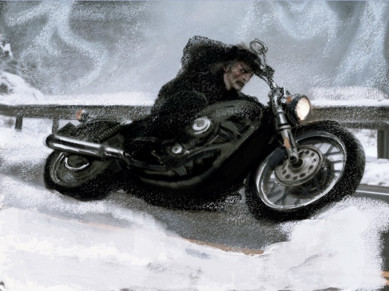 He recalls his motorcycle sliding. Today, his first time on that damn machine. Oh yes, he was a new man. Become a bird in flight, not high enough. Sailed over the handlebars, the railing. Changing his life, right. Heading off early to work. Dependability, his sole virtue.